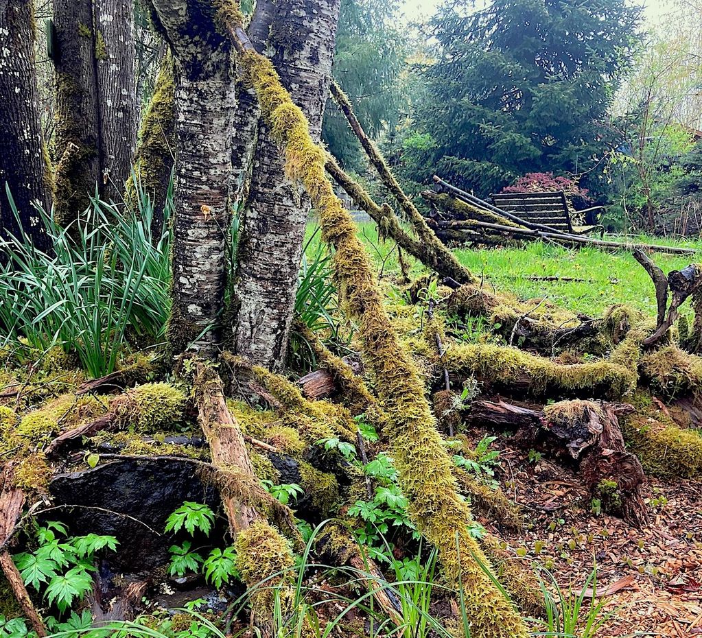 Eye-catching root crown nurse logs, mosses, and sustainably harvested timber provide the foundation for you to fill in with your imagination your beautiful and spirited garden.
